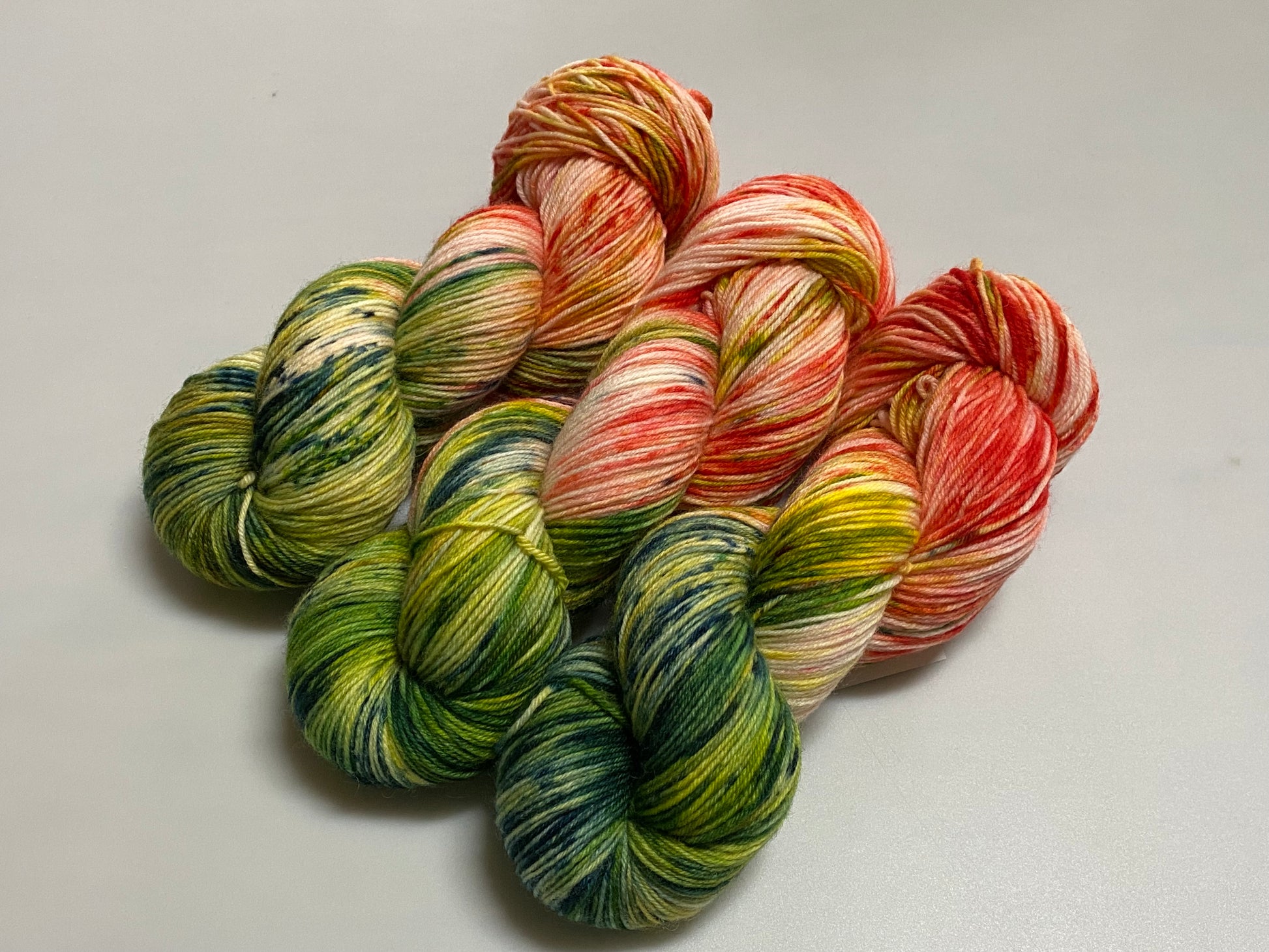 Bitte bedenke das bei Handgefärbten Garnen jeder Strang ein Unikat ist. Auch wenn die Stränge aus dem gleichen Farbbad kommen, können sie Unterschiede aufweisen. Damit diese Unterschiede bei größeren Strickstücken nicht so auffallen empfehlen wir mit 2 Strang/Knäuel gleichzeitig zu stricken. Immer 2 Reihen je Strang.
