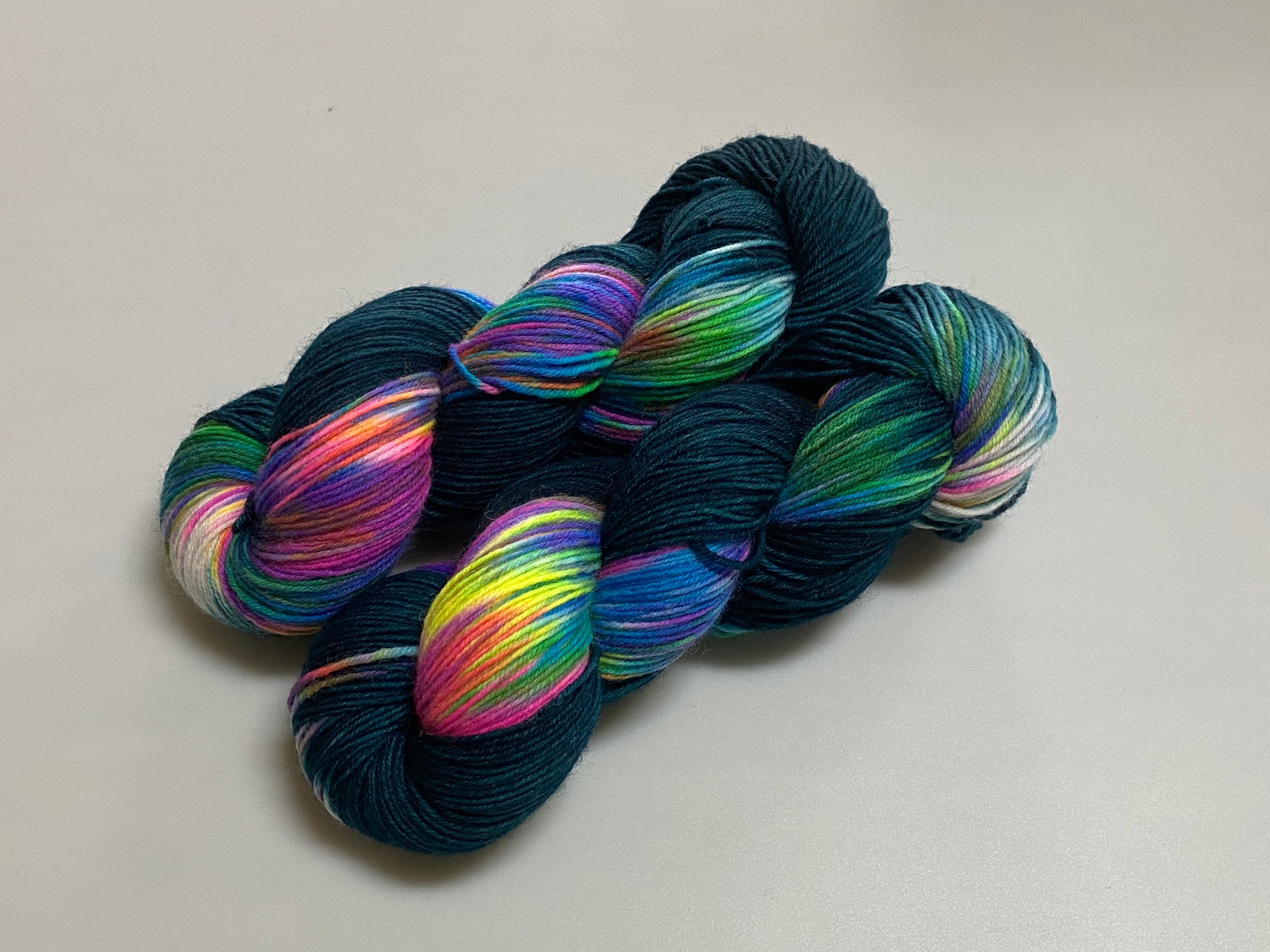 Bitte bedenke das bei Handgefärbten Garnen jeder Strang ein Unikat ist. Auch wenn die Stränge aus dem gleichen Farbbad kommen, können sie Unterschiede aufweisen. Damit diese Unterschiede bei größeren Strickstücken nicht so auffallen empfehlen wir mit 2 Strang/Knäuel gleichzeitig zu stricken. Immer 2 Reihen je Strang.