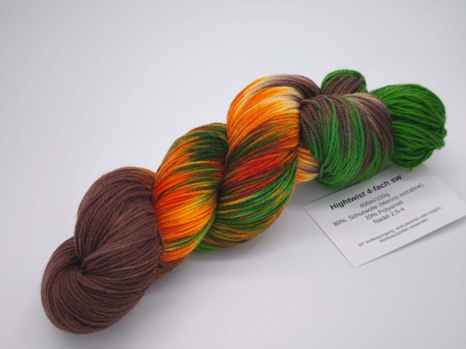 Hightwist, Handgefärbte Sockenwolle 4 Fach