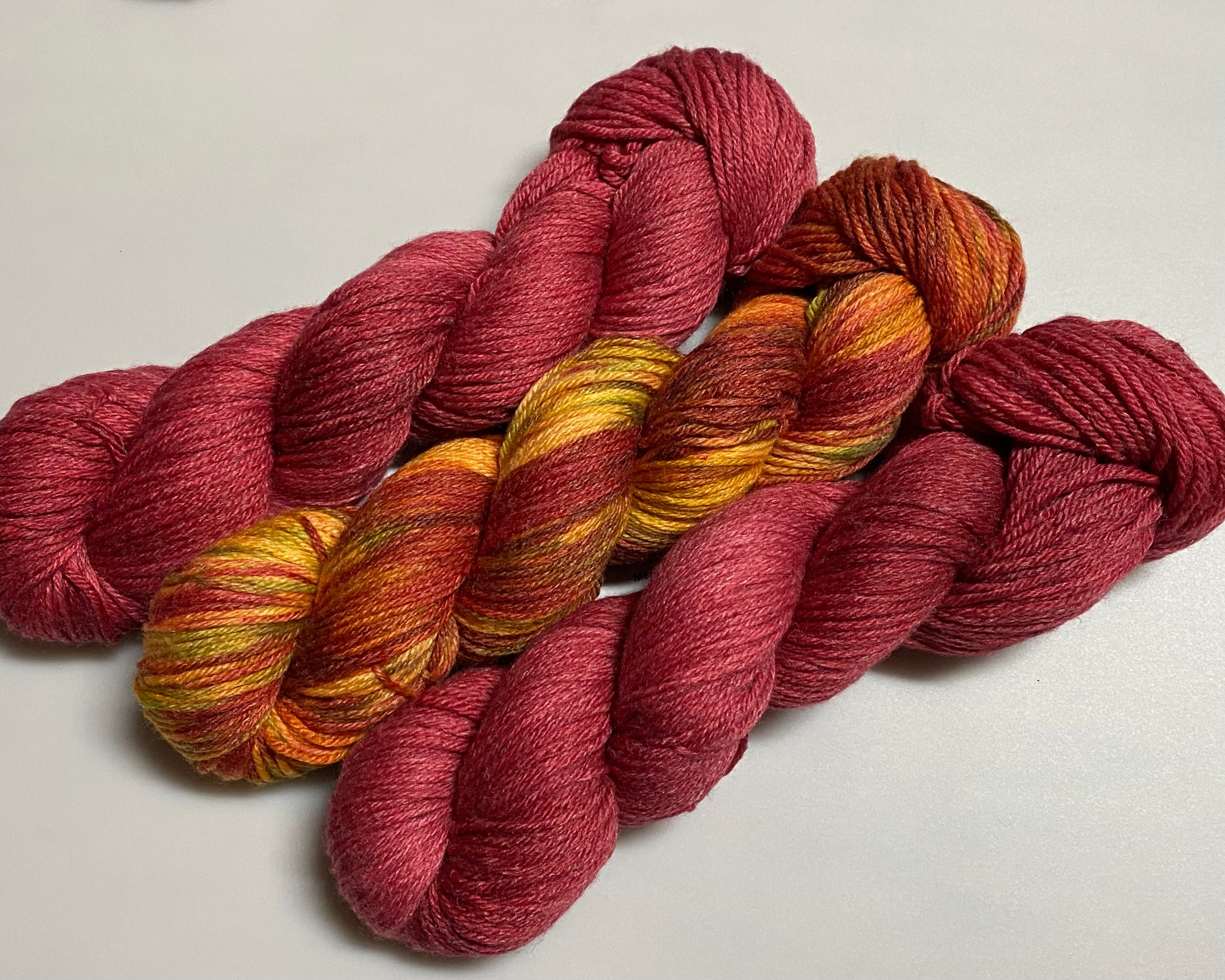 Bitte bedenke, dass bei handgefärbten Garnen jeder Strang ein Unikat ist. Auch wenn die Stränge aus dem gleichen Farbbad kommen, können sie Unterschiede aufweisen. Damit diese Unterschiede bei größeren Strickstücken nicht so auffallen, empfehlen wir mit 2 Strang/Knäuel gleichzeitig zu stricken. Immer 2 Reihen je Strang.